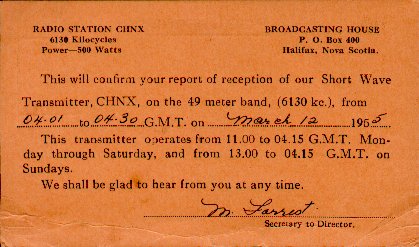 This QSL was CHNX, another of the Canadian short wave stations that carried commercial broadcasting.
