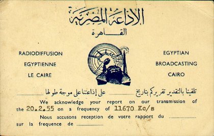 These QSLs were from Egyptian Broadcasting in Cairo. This station was well received on the West Coast.