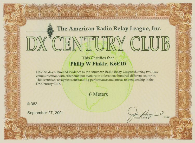 DXCC - DX Century Club - 6 Meters - No. 383