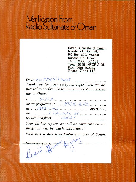 This QSL was from Radio Sultanate of Oman in Muscat.