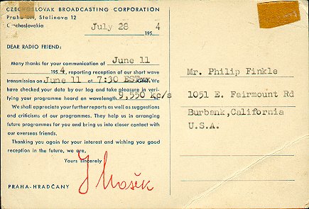 This QSL was from Radio Prague in its North American Service. This station was well received on the West Coast.