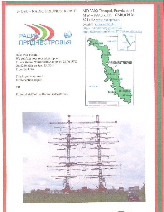 This QSL was from the radio station of the Pridnestrovie Moldavian Republic in Tirasol.p