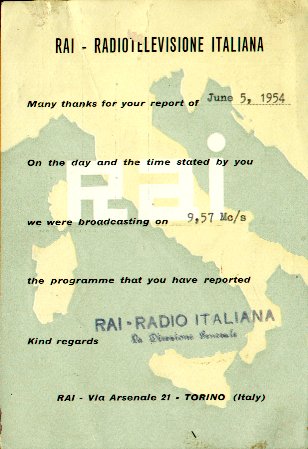 This QSL was from RAI in Rome. It was one of the easier European stations to log on the west coast (other than the Radio Moscow powerhouses!)