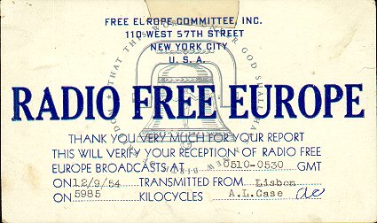 This QSL was from the Radio Free Europe station located at Lisbon. RFE had transmitters there and in Munich, Germany.