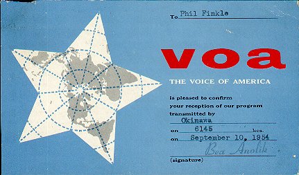This QSL was from Voice of America relay station located near Naha, Okinawa. The US maintained control of the southern Ryukyus long after WWII was over.
