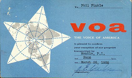 This QSL was from the Voice of America relay station located at Manila, the Philippines.